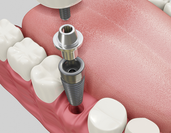 - Dental Implant Osseointegration/Abutment: It will be necessary to allow 3-6 months for osseointegration to occur if your new teeth are to remain firmly in place. Once your dental implants fuse with your jawbone, a firm foundation will be available to adequately support your new restoration. Before its placement, though, you will have metal abutments (connectors) attached to each implant post to ensure your new crown, bridge, or denture stays in place.