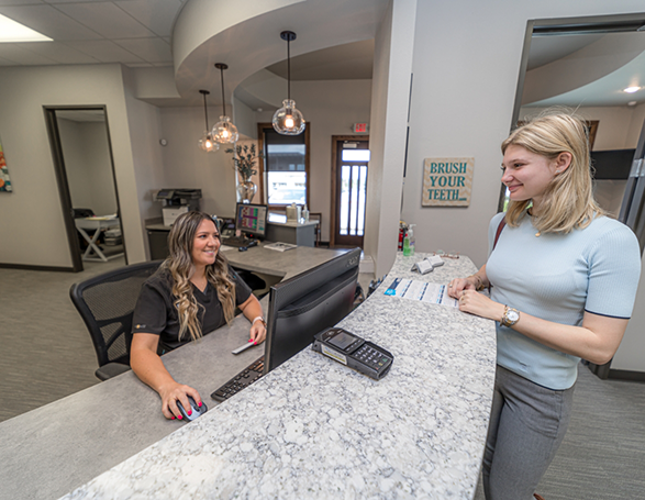 Your first appointment takes about two hours, giving us time to provide a comprehensive, relational, and exceptional experience. You’ll meet one of our dentists, a dental assistant, and a hygienist from our team who will take their time examining and cleaning your smile and listening to and addressing any questions or concerns you might have. Here’s what you can expect during your first visit: